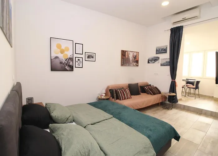 Located only 1.3 km from Sp Pula, the 25 m^2 Giardini Center Apartment is about 10 minutes by car from a top family-friendly place like Fort Verudela Aqvarivm. Situated only a few metres from Arch of the Sergii, the apartment features convenient cleaning amenities like a washing machine for guests to use.